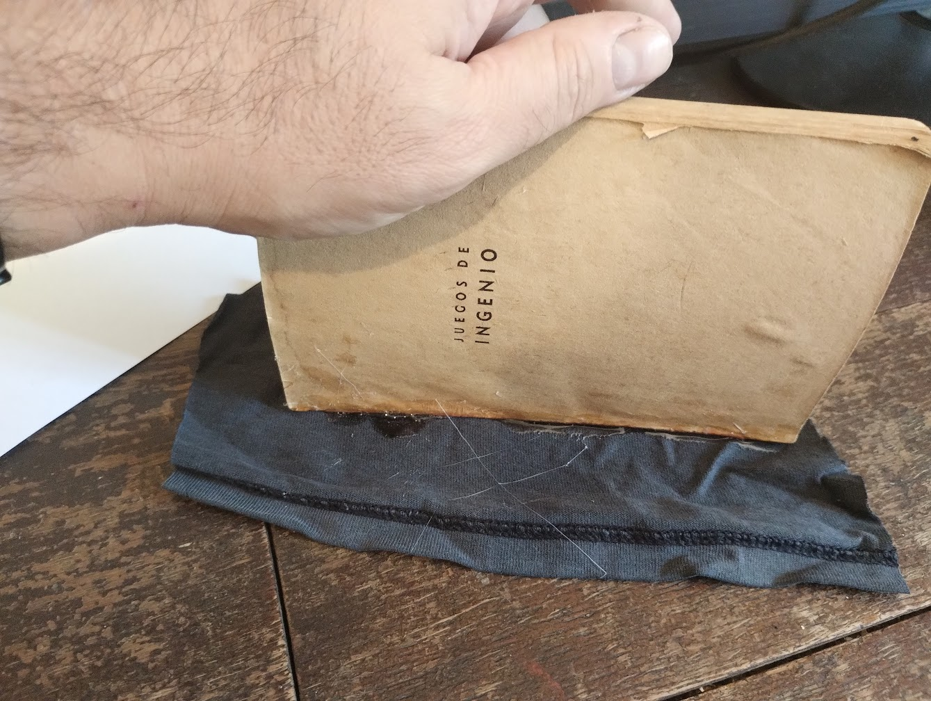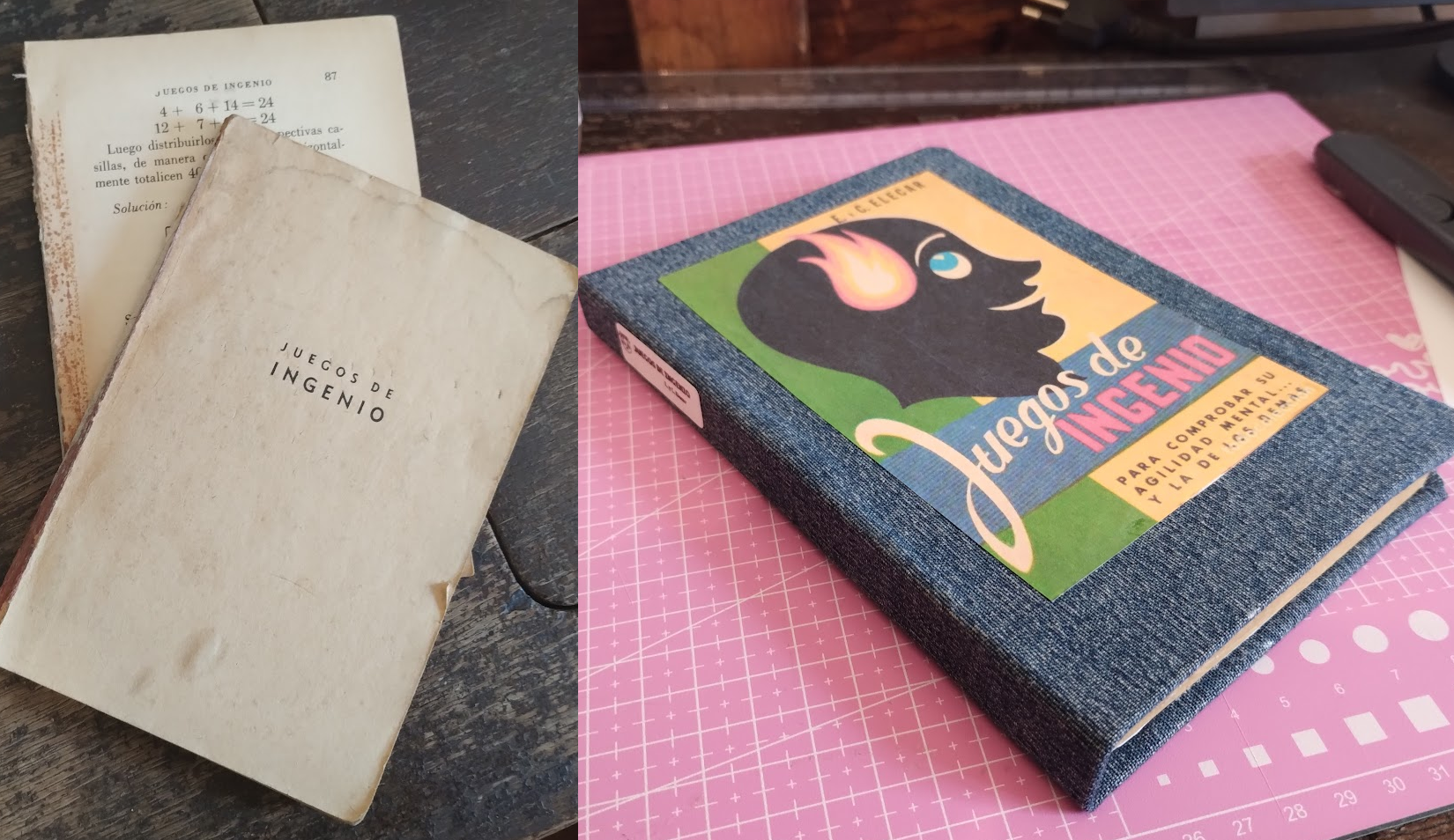 Tenía un libro de “juegos de ingenio”, que la verdad no es muy bueno, pero me daba cosa tirarlo, por más que estaba en condiciones desastrosas. Así que decidí resucitarlo con un poco de manualidades.