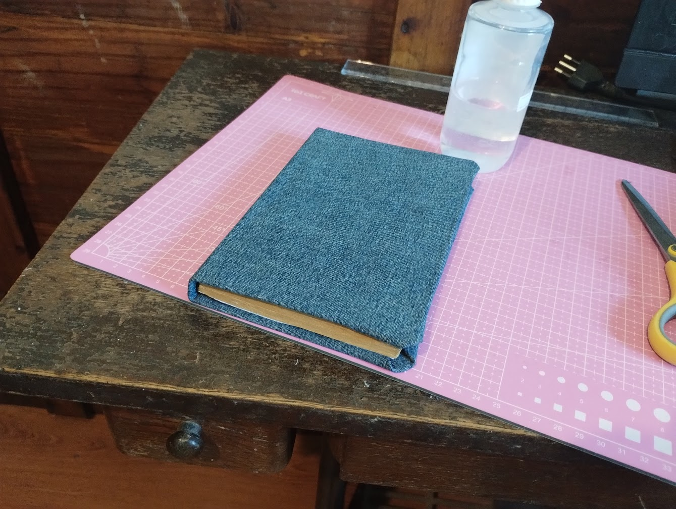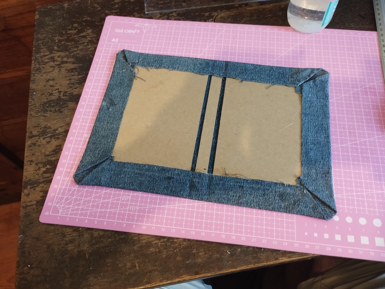 Luego de eso, plegar la tela para que queden bien forradas las tapas.