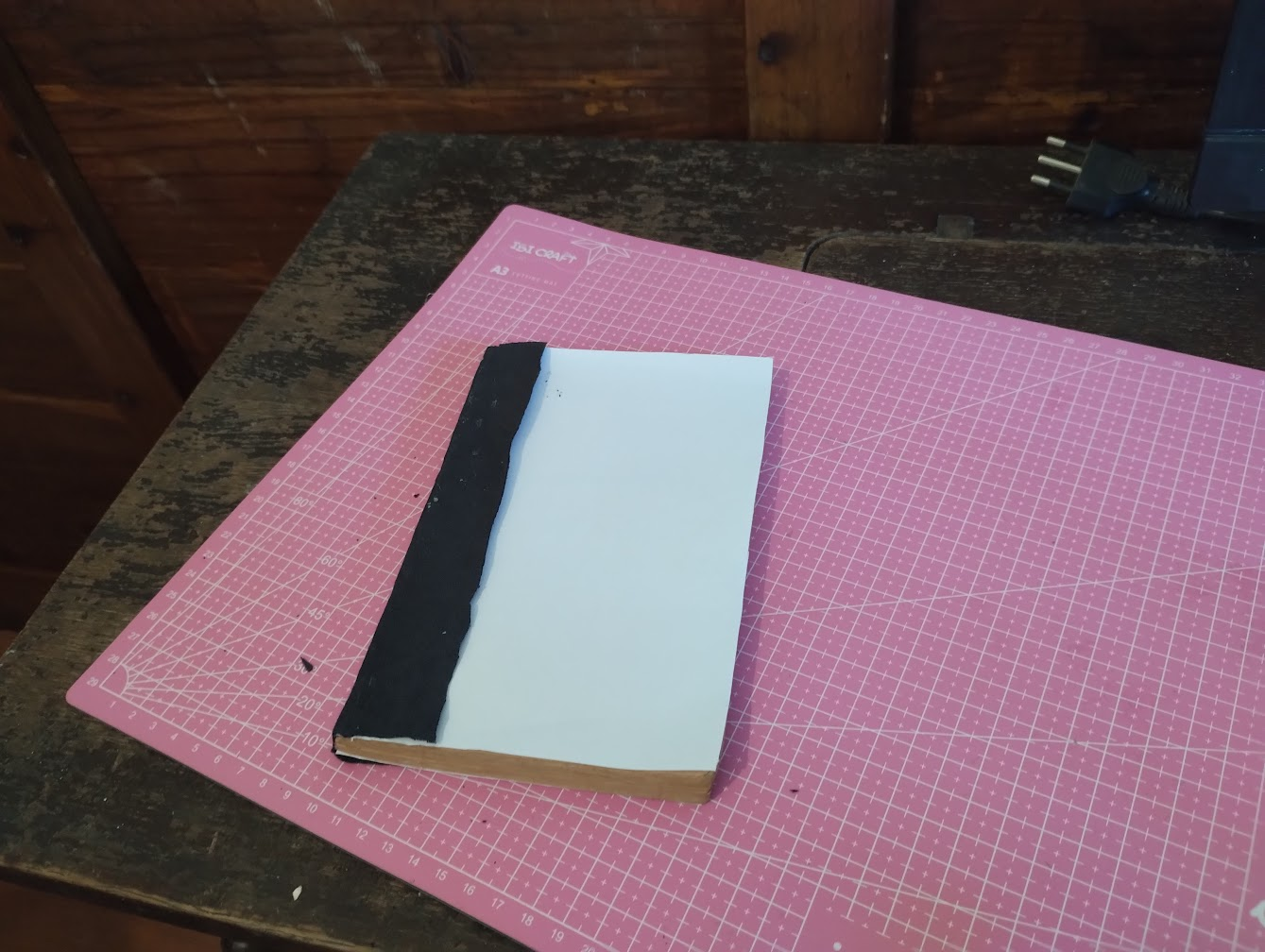 Luego le agregué un par de hojas extra. Mi intención era agregarle una hoja de papel jaspeado entre esas hojas extras y la tapa. La realidad es que aún no lo hice, y como es puramente estético no sé si lo voy a hacer.