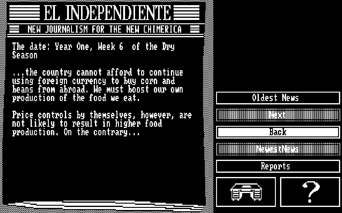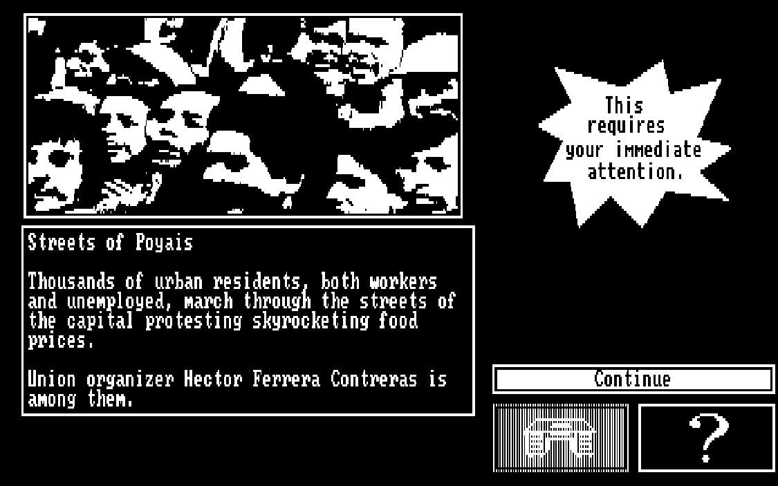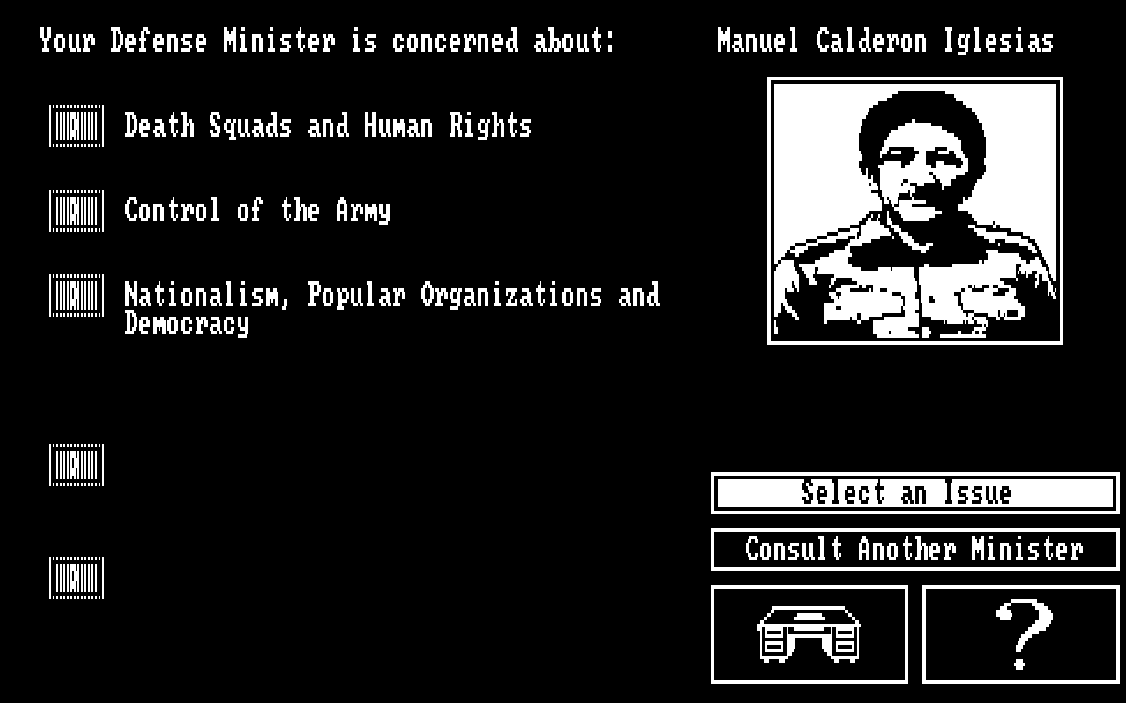 Es un juego que, en mi opinión, no se ha vuelto a repetir. Probé otros juegos políticos, más recientes, y en mi opinión ninguno logra la inmersión que tiene Hidden Agenda. No quiero caer en “todo lo viejo era mejor”, porque no es así. Pero comparalo con el Civilization. El Civ 1 (1991) era un excelente juego. El Civ 2 (1998) es esencialmente el mismo juego, pero actualizado. Si seguís hasta el Civ 7 (2025), los juegos van cambiando, pero sigue siendo reconociblemente Civilization. Incluso otros juegos similares (Colonization, Alpha Centauri) son también reconociblemente de la misma familia de juegos. Podés argumentar que algunos son mejores (Alpha Centauri, por supuesto), pero son todos suficientemente similares como para que satisfagan al mismo tipo de jugadores. Los juegos de Paradox (Europa Universalis, Crusader Kings, etc) son también claramente una familia relacionada, prefieras cual prefieras. Pero como Hidden Agenda, la verdad, no encontré nada. Lo más cercano es el Suzerain, pero no logra lo mismo. Suzerain tiene una historia mucho más lineal, y con mucho más texto, y con todo eso no logra ni cerca la misma inmersión. Sigue siendo un buen juego, pero no es Hidden Agenda.