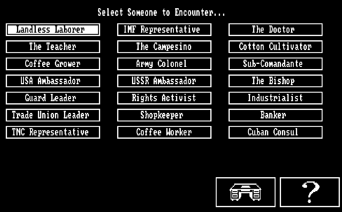 Hidden Agenda te pone en el rol del presidente interino de un país centroamericano que acaba de sacarse de arriba a su dictador. Tenés que negociar con distintos actores sociales, políticos, y militares, y lograr sobrevivir sin que te saquen de un golpe de estado en el orto.