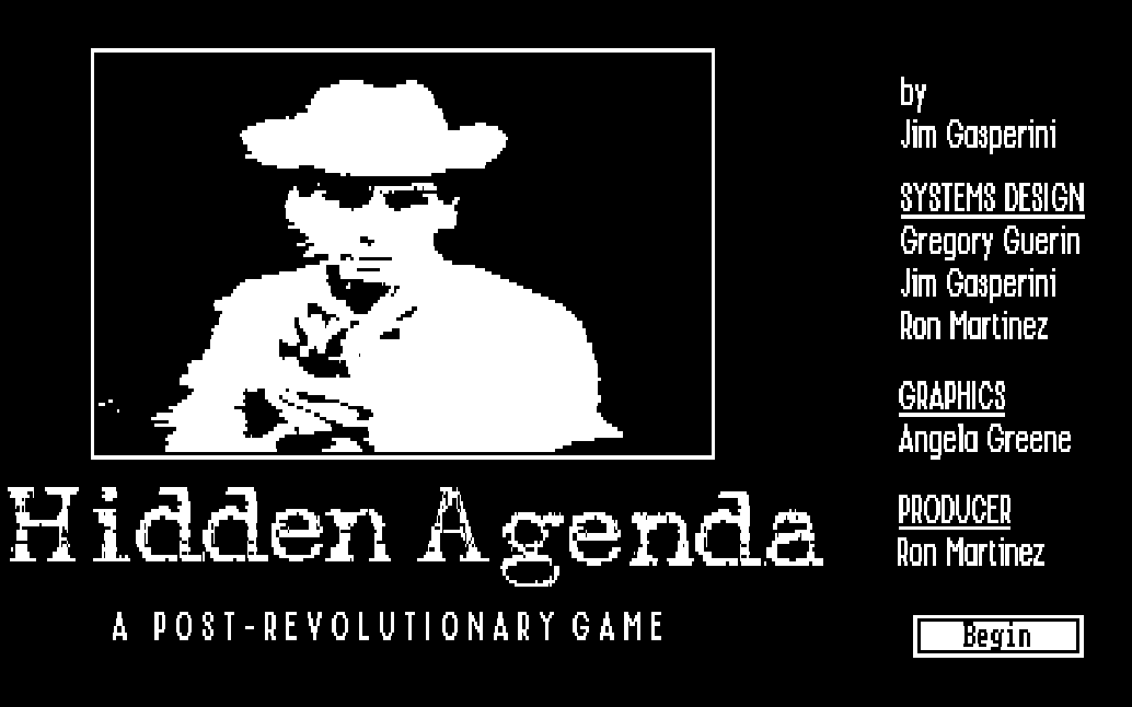 A Hidden Agenda lo descubrí en una época de mi adolescencia tardía en la que estaba obsesionado con encontrar juegos sobre política. Además, cuando era joven mis computadoras nunca eran particularmente potentes, así que los juegos viejos me venían re bien. De todos los juegos que descubrí en esa época (recuerdo Shadow President, Conflict: Middle East Political Simulator, y Balance of Power), Hidden Agenda es por lejos el mejor, y el que incluso hoy, 34 años después de que salió, cada tanto sigo jugando.